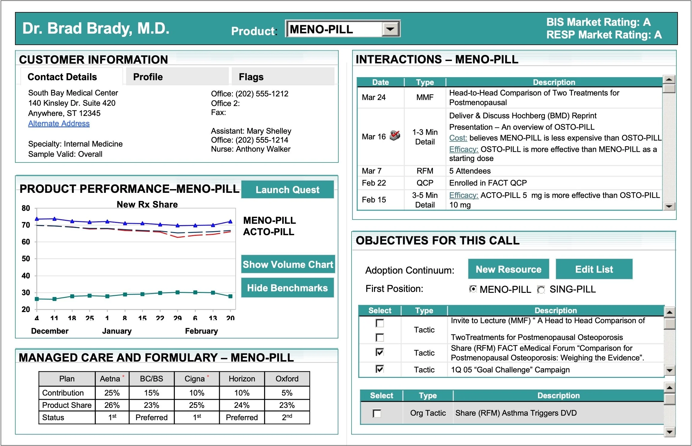 Led an iterative design process, including usability testing of paper and interactive prototypes. The resulting dashboard helped reps track performance, personalize outreach, and facilitate conversations with physicians across therapeutic areas.